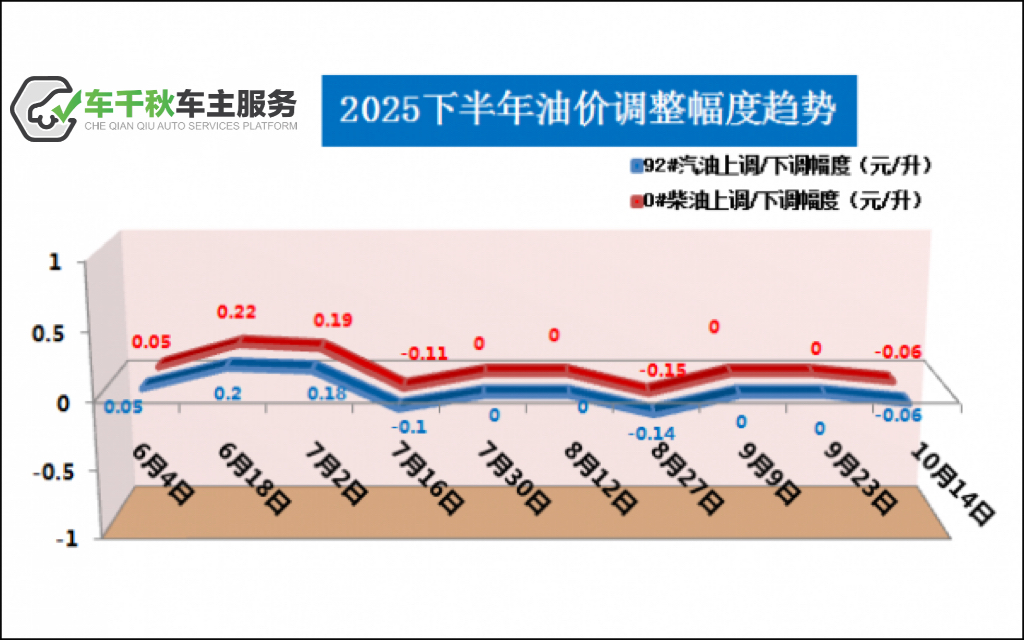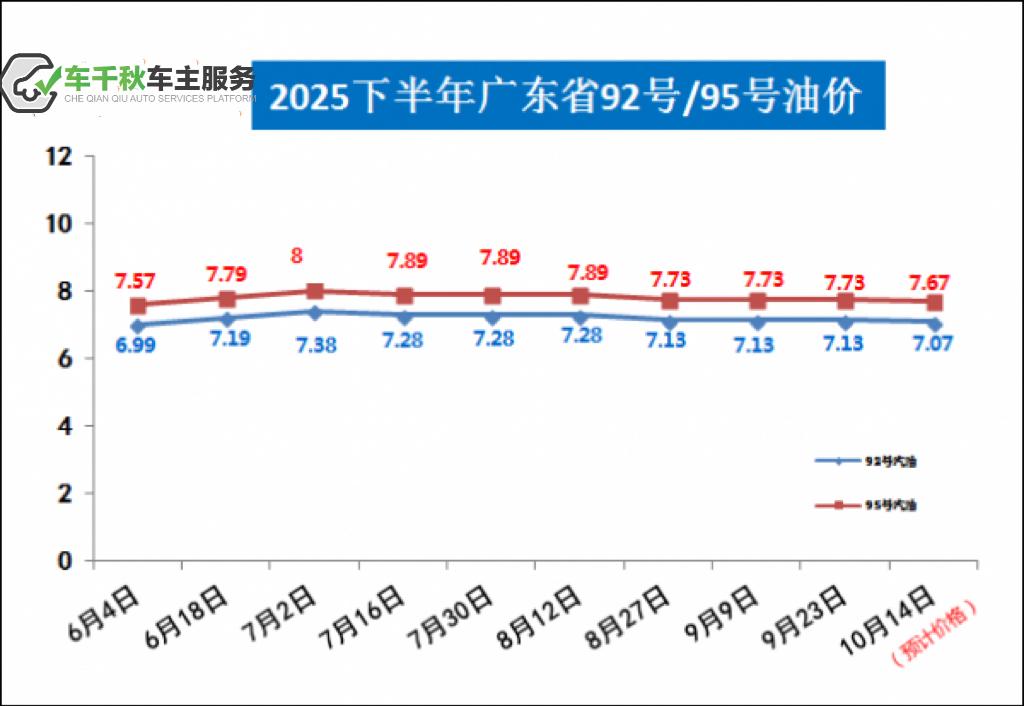 2025下半年油价调整幅度趋势图:2025下半年广东92号/95号油价走势:
